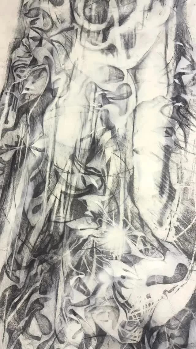 It comprises three main elements: The search for an intimate connection between pure visual language and elemental particle characteristics and interactions. Development of the use of moving image work to explore actual movement and interaction in a drawing context equivalent to the interaction of particles and finally it’s culmination in the development of performative pieces that involve “live” drawing and the cooperation, participation and “interaction” of artists, scientists and members of the public.