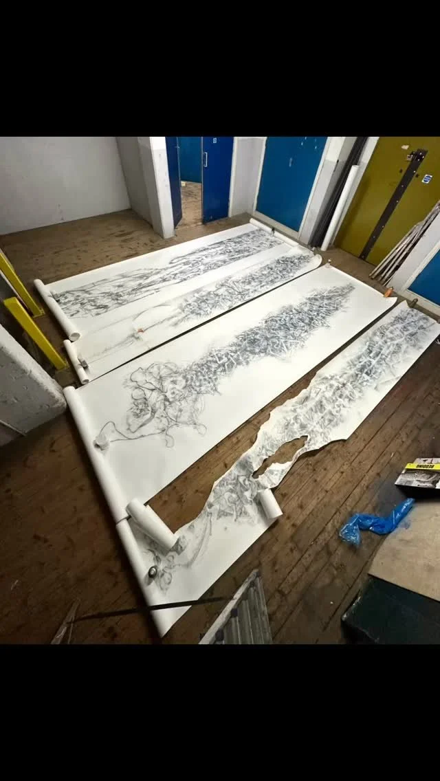 The Sketchbook and the Collider is an on-going collaboration with Prof Kostas Nikolopoulos from the particle physics group at University Birmingham and evolves from my residency at the University in 2018 culminating in the exhibition “The sketchbook and the Collider,” at the University and subsequent Arts Council funded exhibition at the Library of Birmingham entitled “Collision Event” in 2019.
