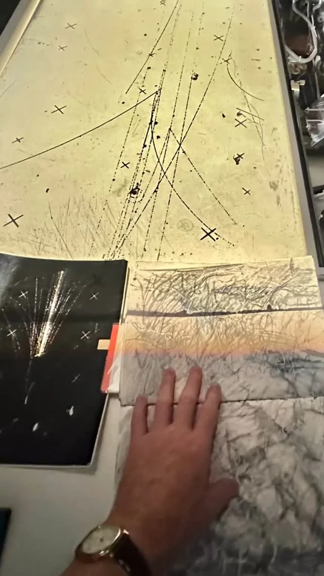The Sketchbook and the Collider is an on-going collaboration with Prof Kostas Nikolopoulos from the particle physics group at University Birmingham and evolves from my residency at the University in 2018 culminating in the exhibition “The sketchbook and the Collider,” at the University and subsequent Arts Council funded exhibition at the Library of Birmingham entitled “Collision Event” in 2019.