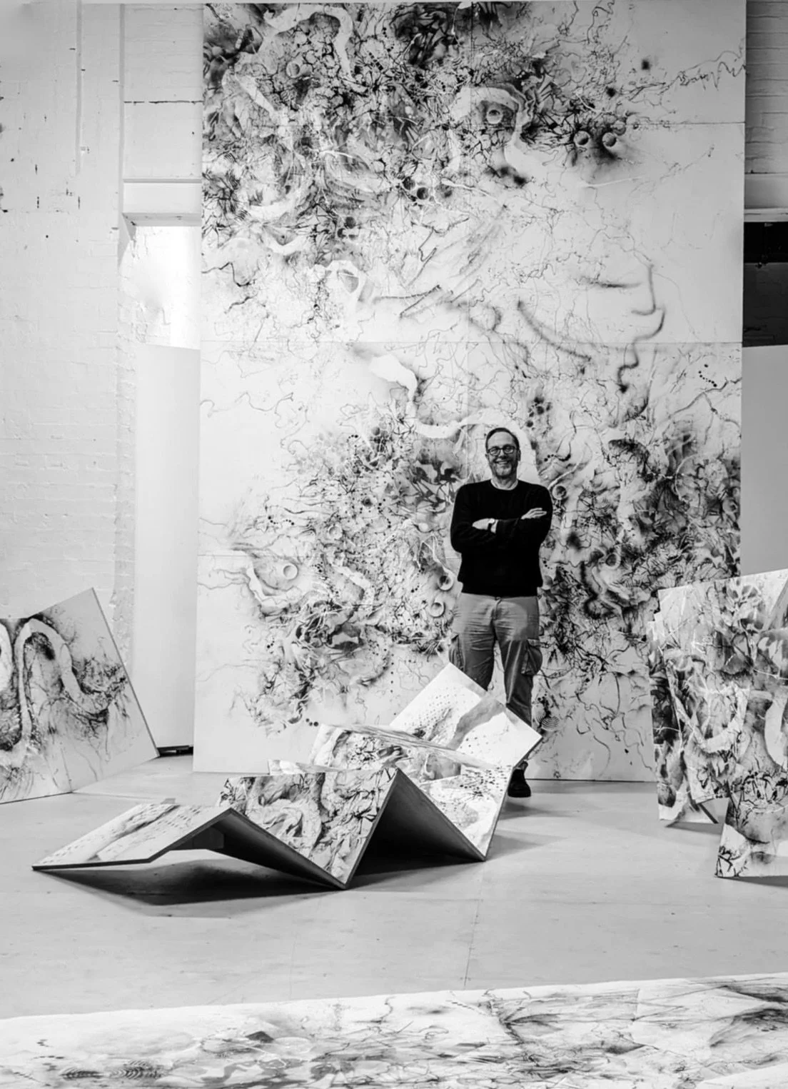 The work takes as its starting point the search for equivalents between the primary artistic language of drawing and the elementary particles and their interactions.