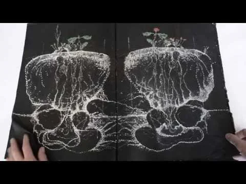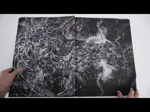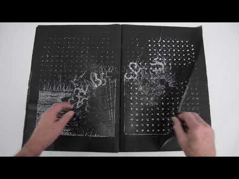 60 x 53 cms (double page spread.) Series of 10 loose-leaf artist books with over 40 pages each. White ink on black tissue paper. 2015 -2021.